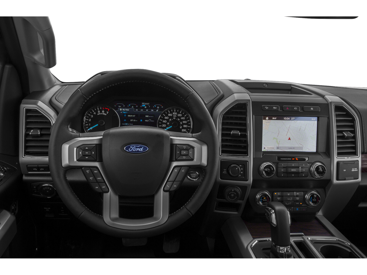 With its rugged good looks, the F-150 Lariat commands attention on the road. The chrome exterior accents and 18-inch chrome-like wheels add a touch of sophistication, while the black leather-trimmed interior provides a premium feel. Enjoy the convenience of features like remote start, blind spot monitoring, and a 110V power outlet, all while staying connected with the SYNC 3 infotainment system.