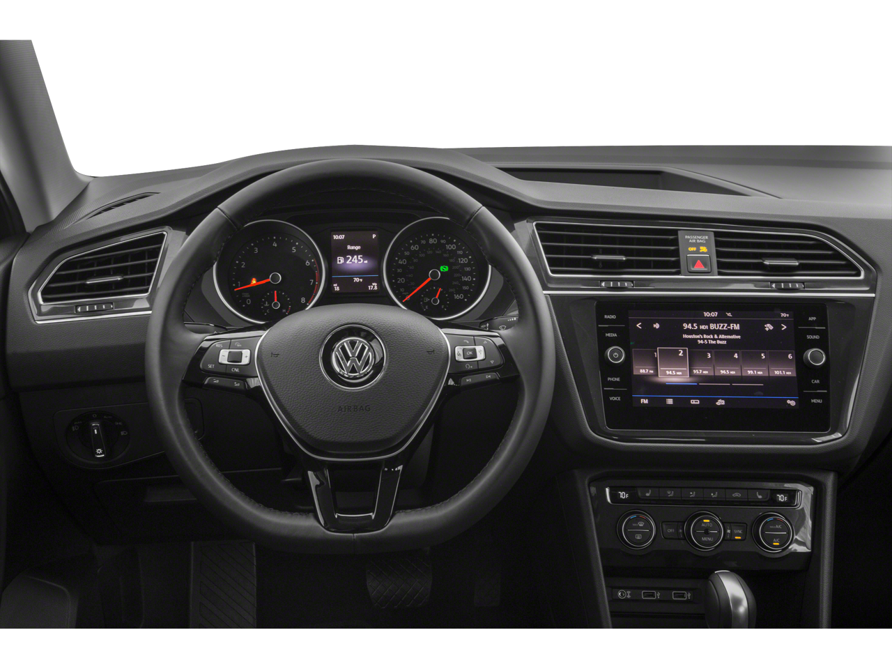 - Radio: Composition Media AM/FM/HD -inc: 8" touchscreen, dual USB input, voice control, 6-speaker sound system, VW App-Connect smartphone integration and interface w/Apple CarPlay, Android Auto and MirrorLink, capability for in-vehicle 4G LTE enabled Wi-Fi (cellular data plan required; includes limited trial), capability for VW Car-Net services (capabilities for certain services vary; requires enrollment or subscription), Bluetooth® connectivity (for compatible devices), SiriusXM satellite radio w/limited-time trial subscription and USB charging-only port facing 2nd row seat